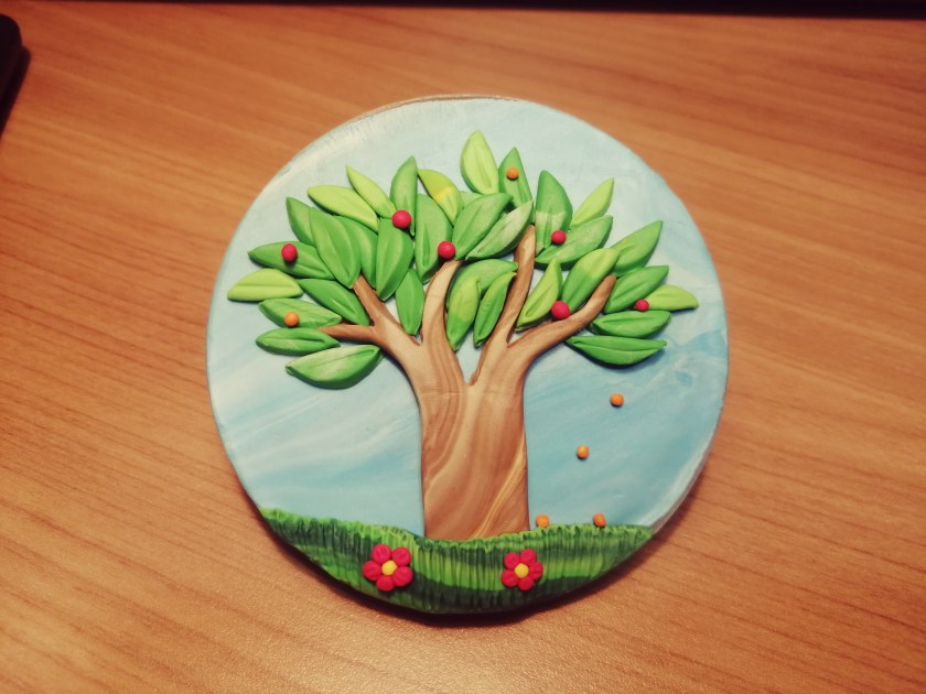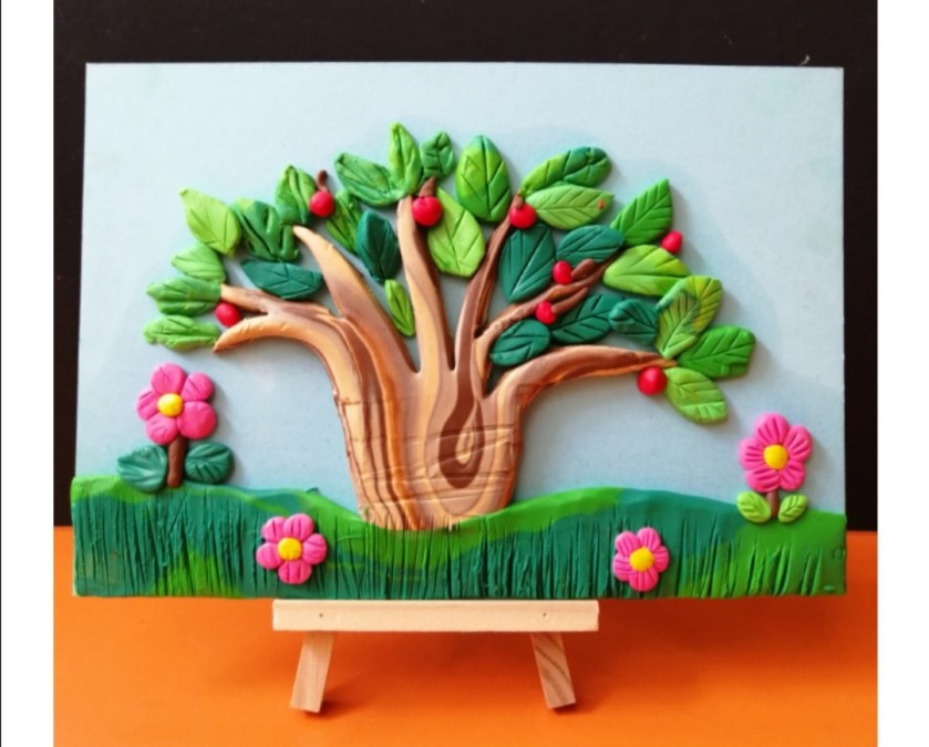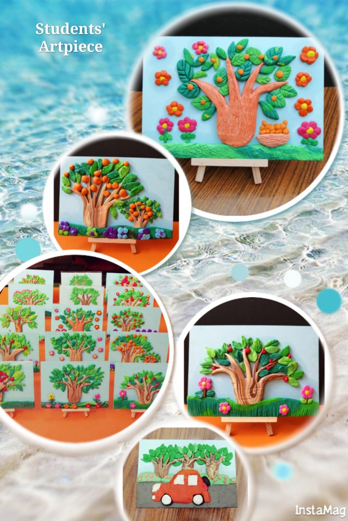 Clay Tree and flowers by students age 7~ (“,)