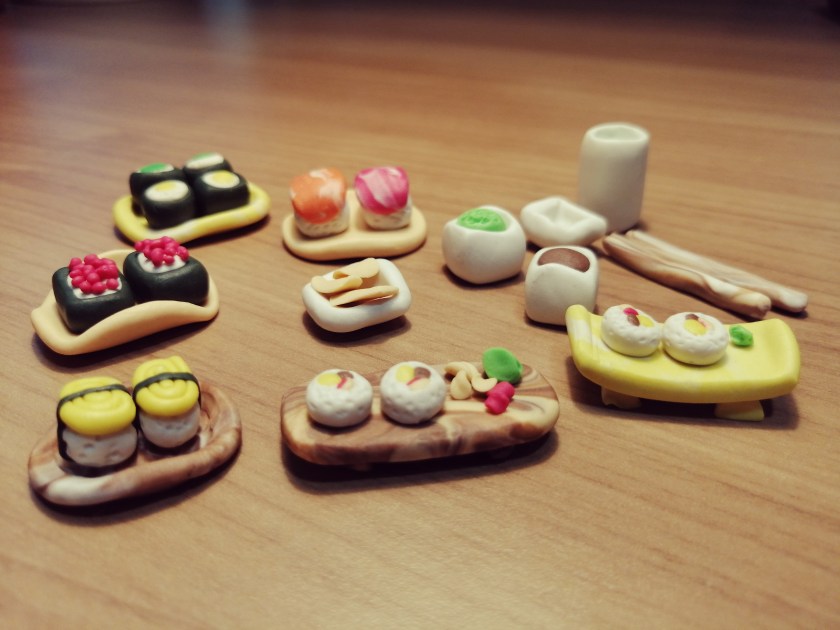 Sushi anyone ? Miniature Sushi Clay by student age 7 ~